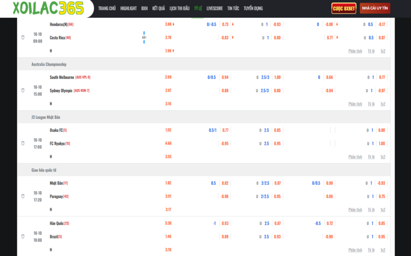 Xoilac TV cập nhật tỷ lệ kèo cho mọi giải đấu trên thế giới